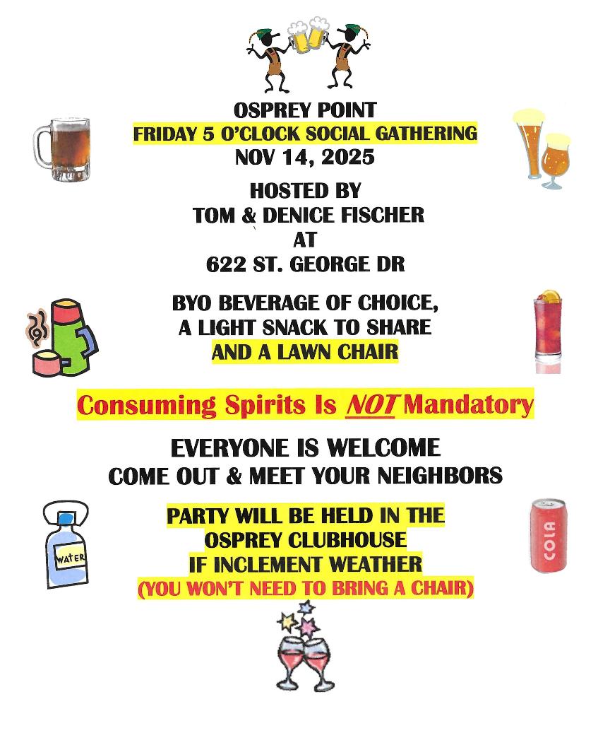 5 O'CLOCK SOCIAL - Nov 14th - 5pm 622 St George Dr