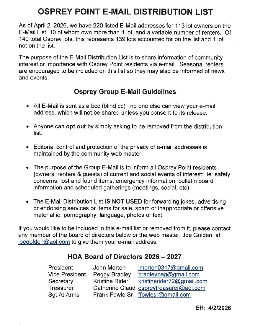ABOUT OSPREY E-MAIL DISTRIBUTION