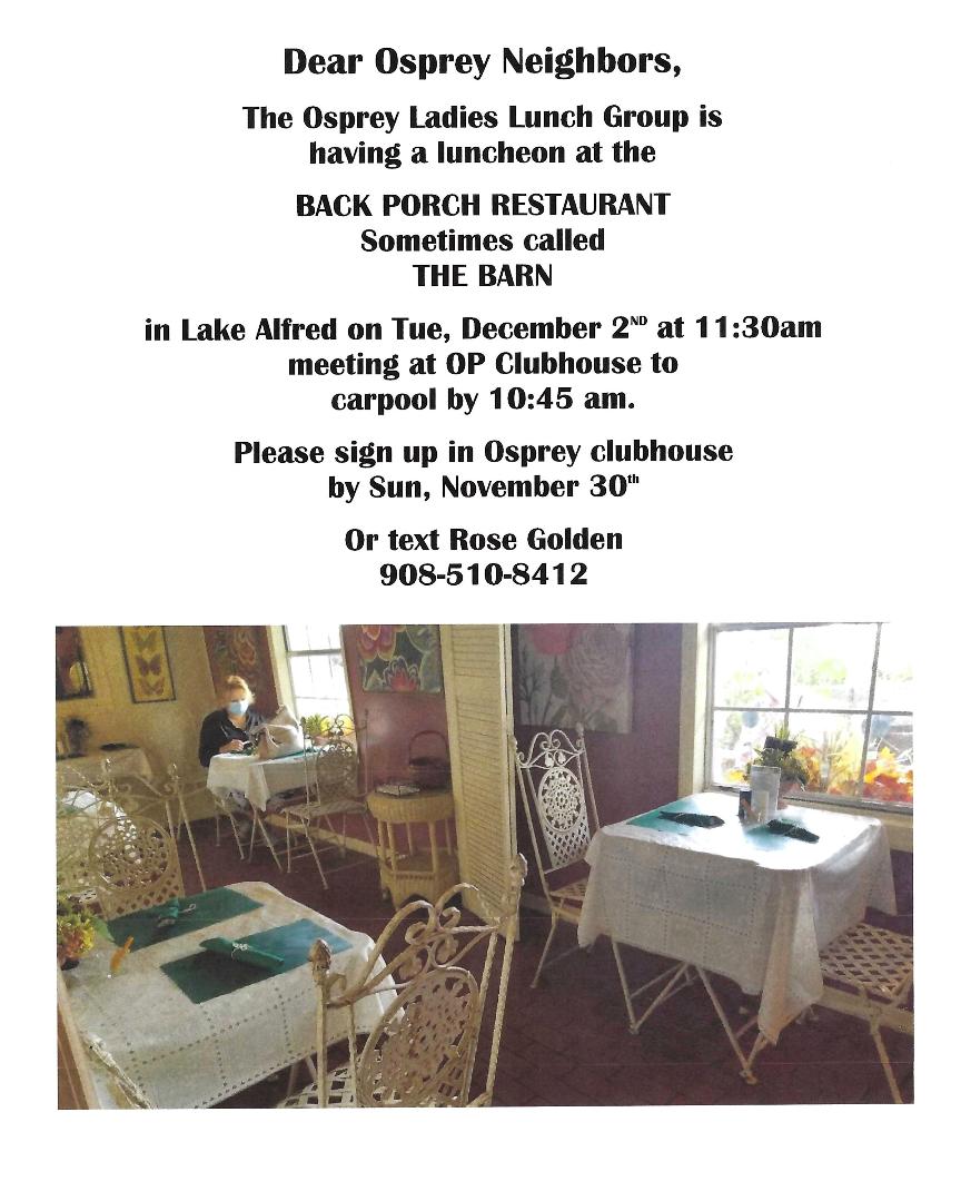 LADIES' LUNCHEON - BACK PORCH RESTAURANT/THE BARN