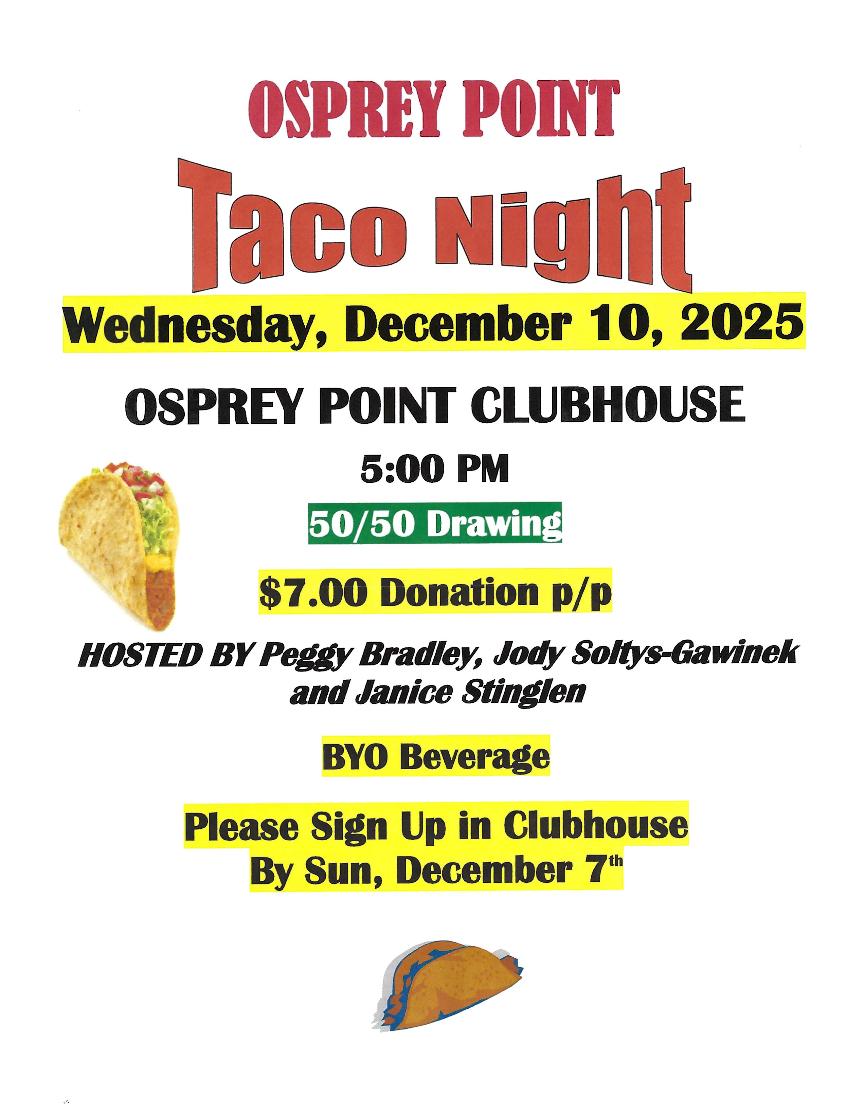TACO NIGHT - Wed, Dec 10th - 5pm